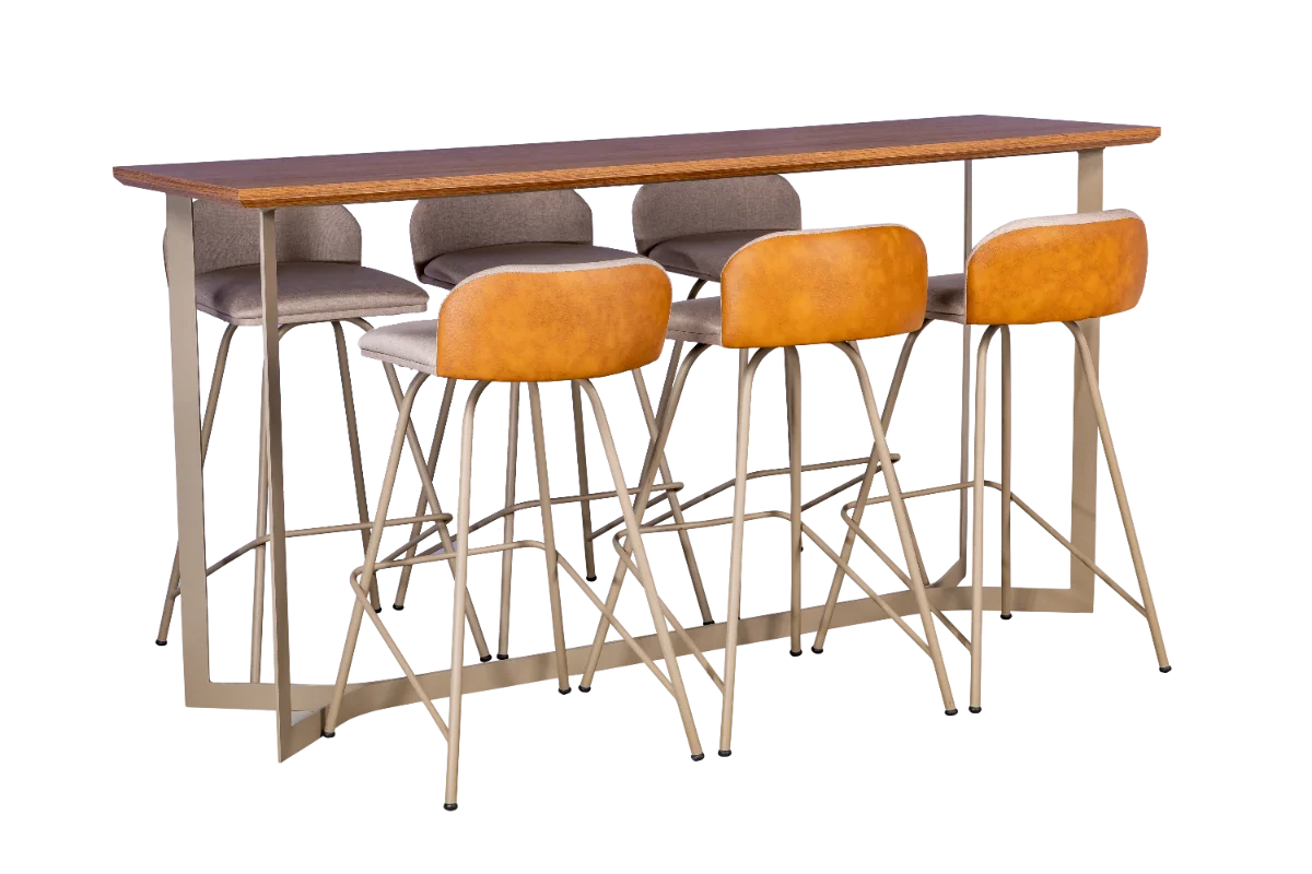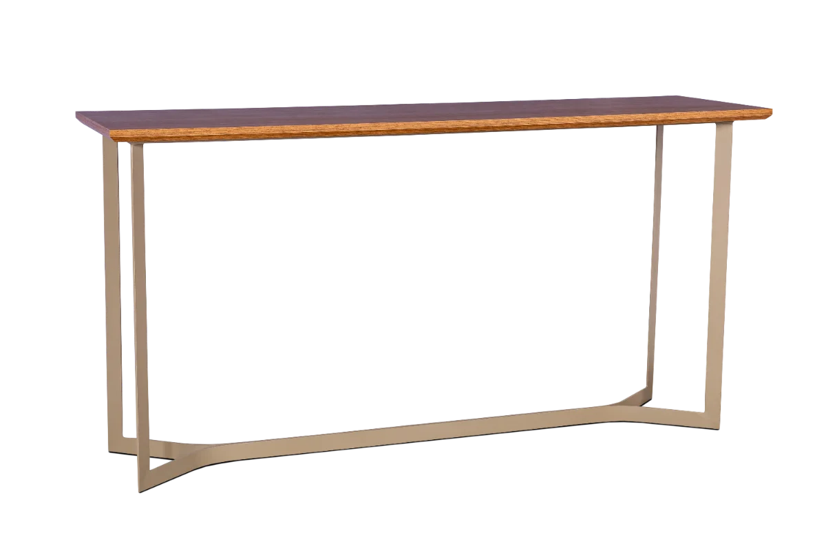 Lindo aparador com design moderno, base metálica na cor fendi e tampo em madeira laminada na cor pinhão.