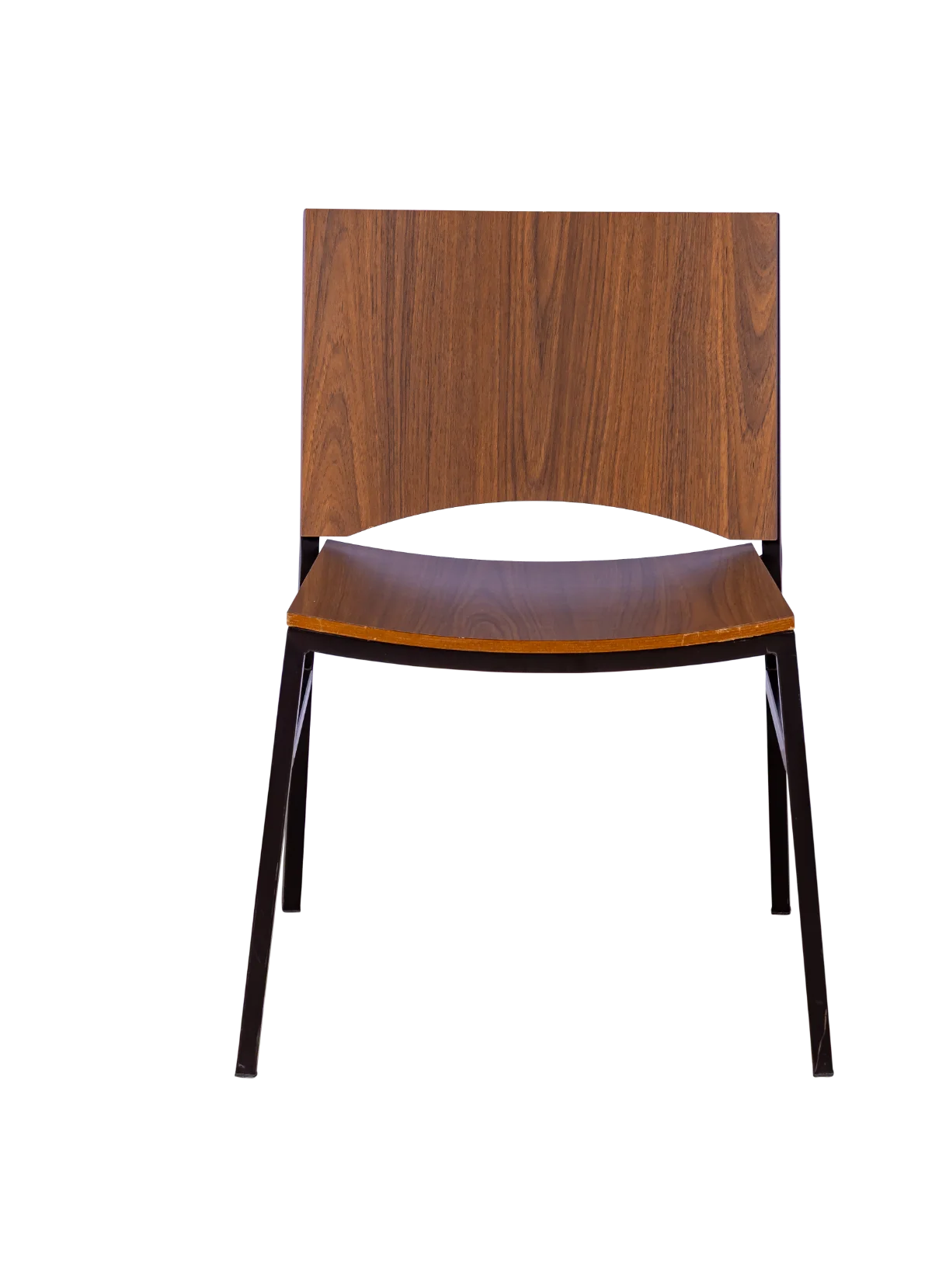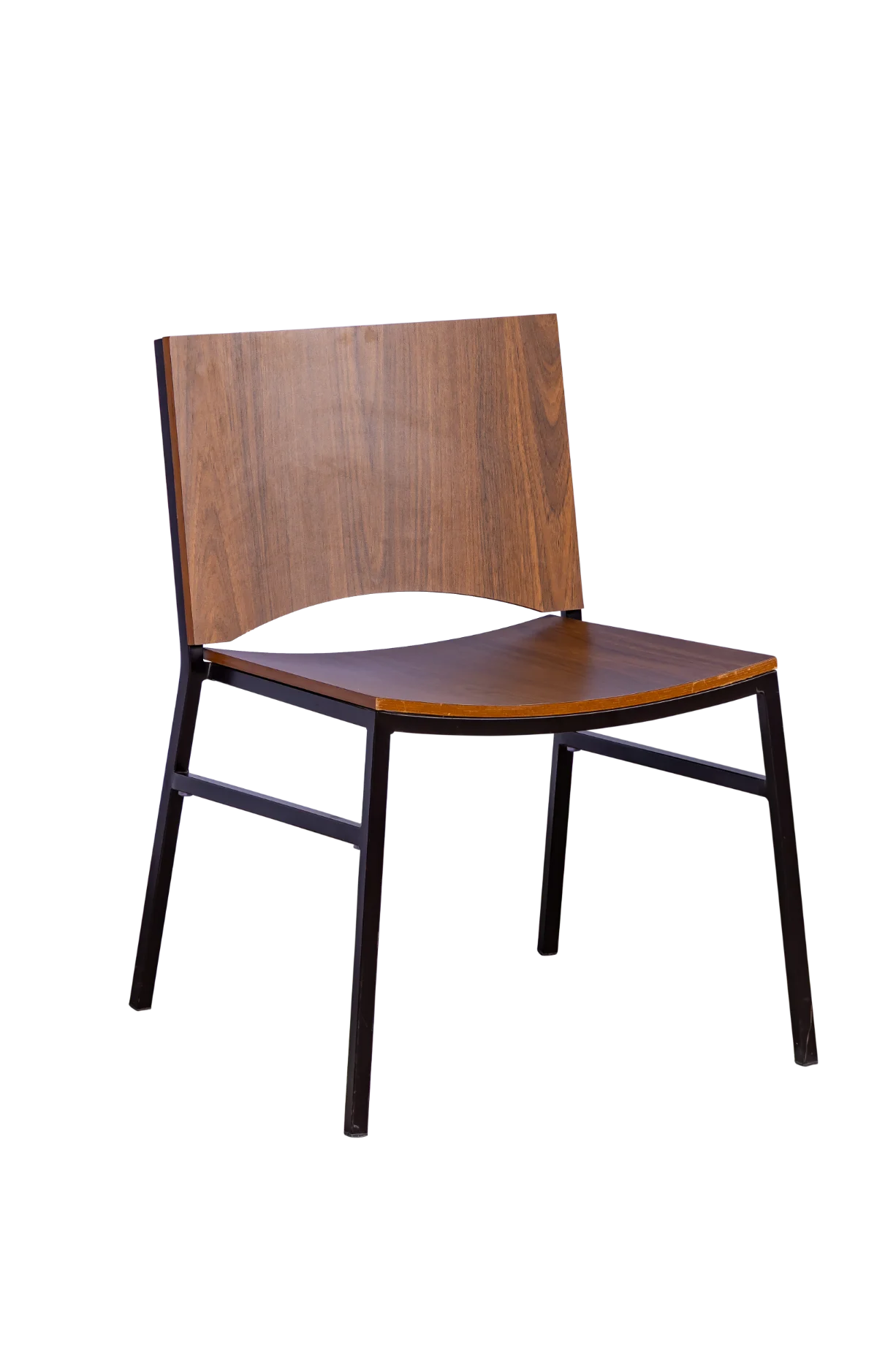 Cadeira Artesian com estrutura metálica na cor preta e encosto e assento em MDF madeirado pau ferro.