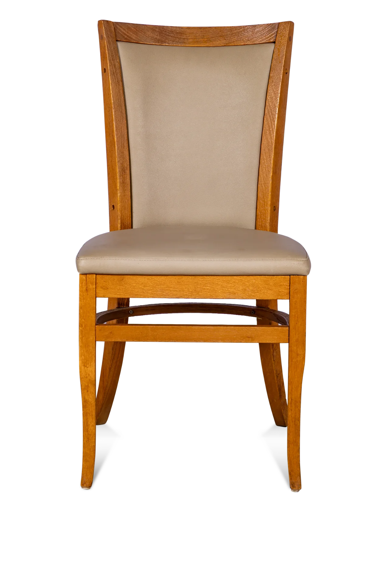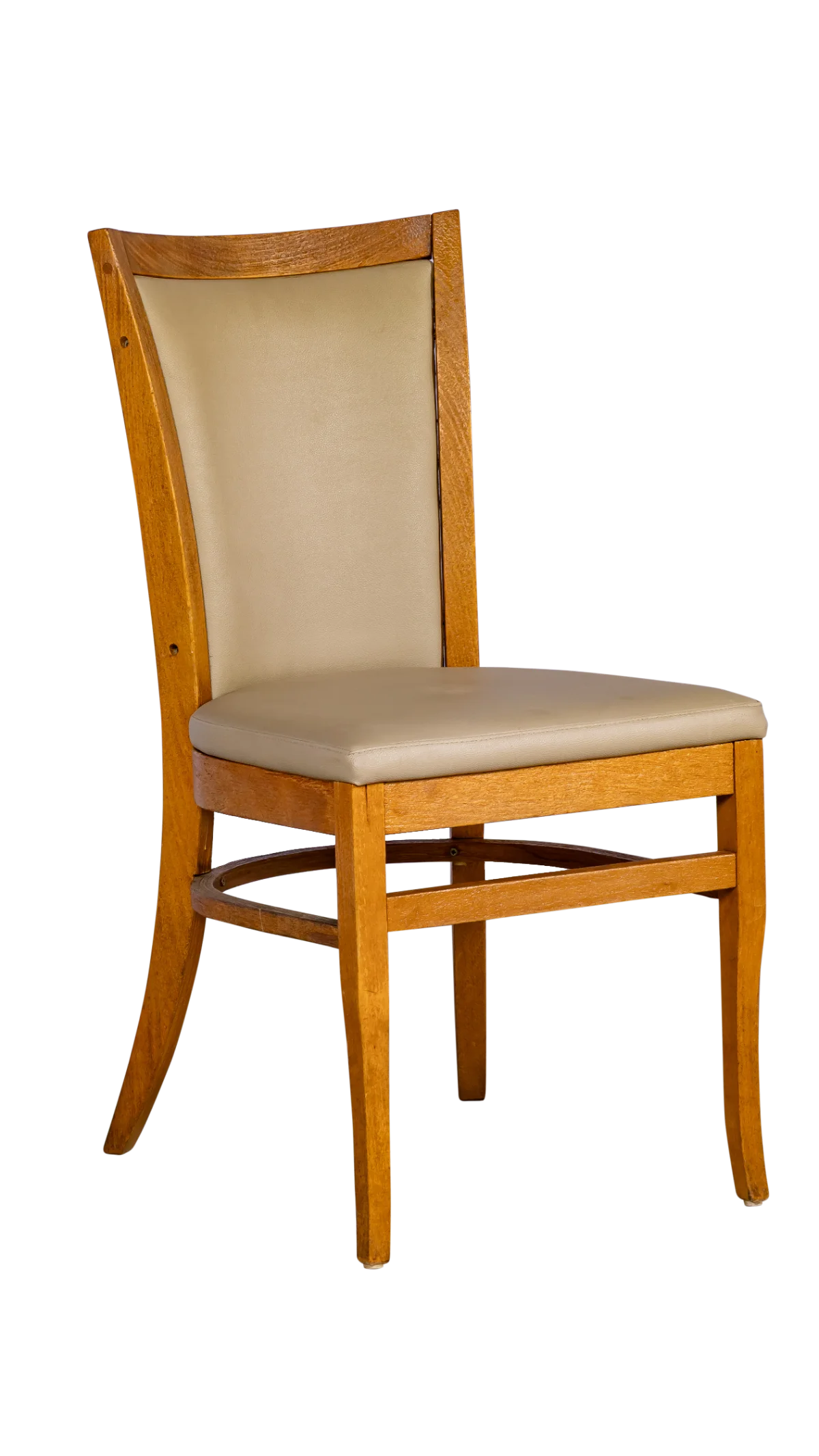 Cadeira madeira estofada em couro ecólogico fendi para locação