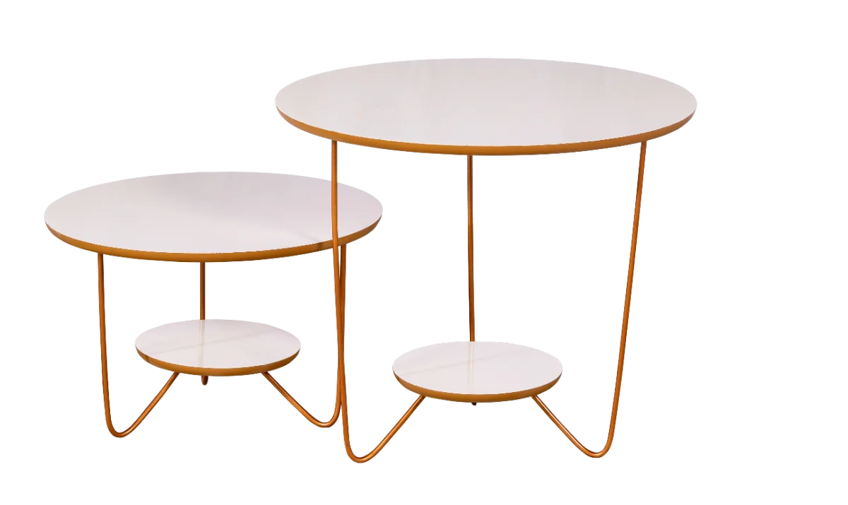 Conjunto mesas centro e lateral linha metal orgânico off white para locação
