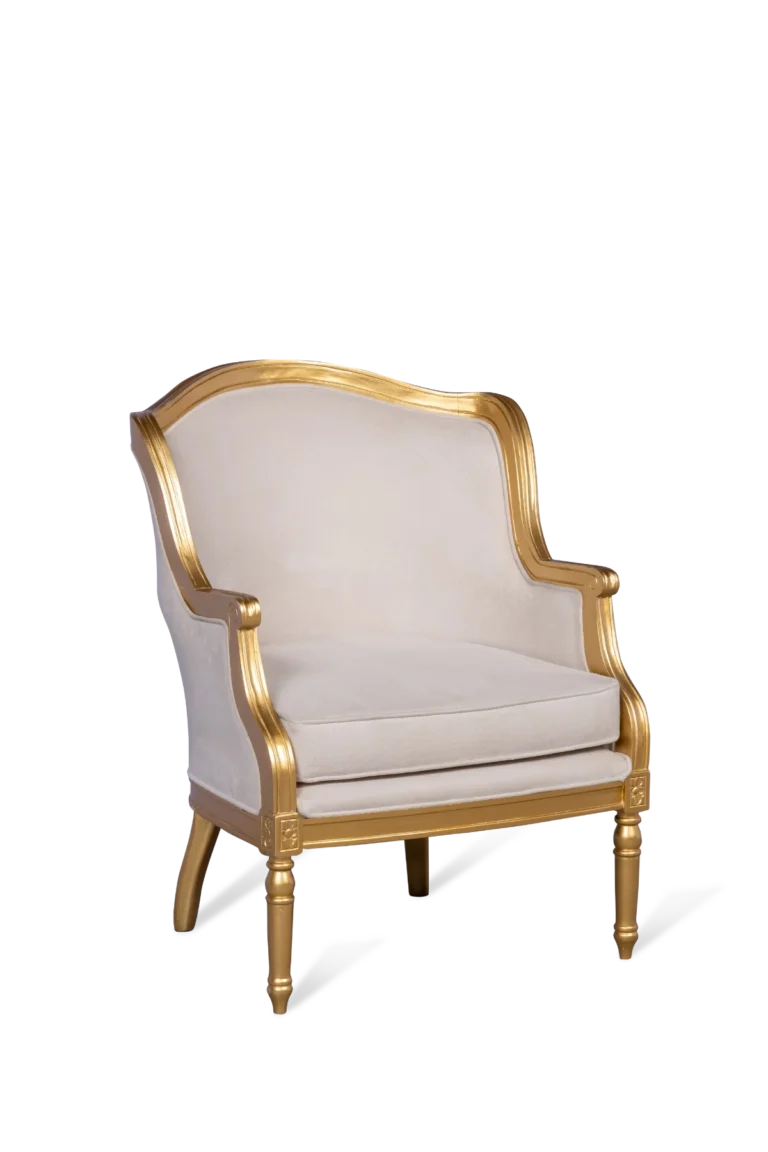 Linda mesa clássica decorativa de apoio com estrutura em madeira pintada na cor dourada.