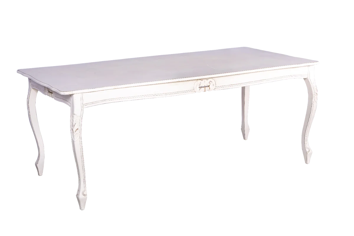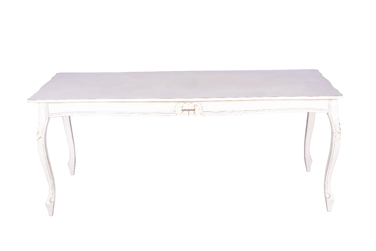Mesa modelo Luís XV 2,00×1,00m em madeira na cor branco para locação